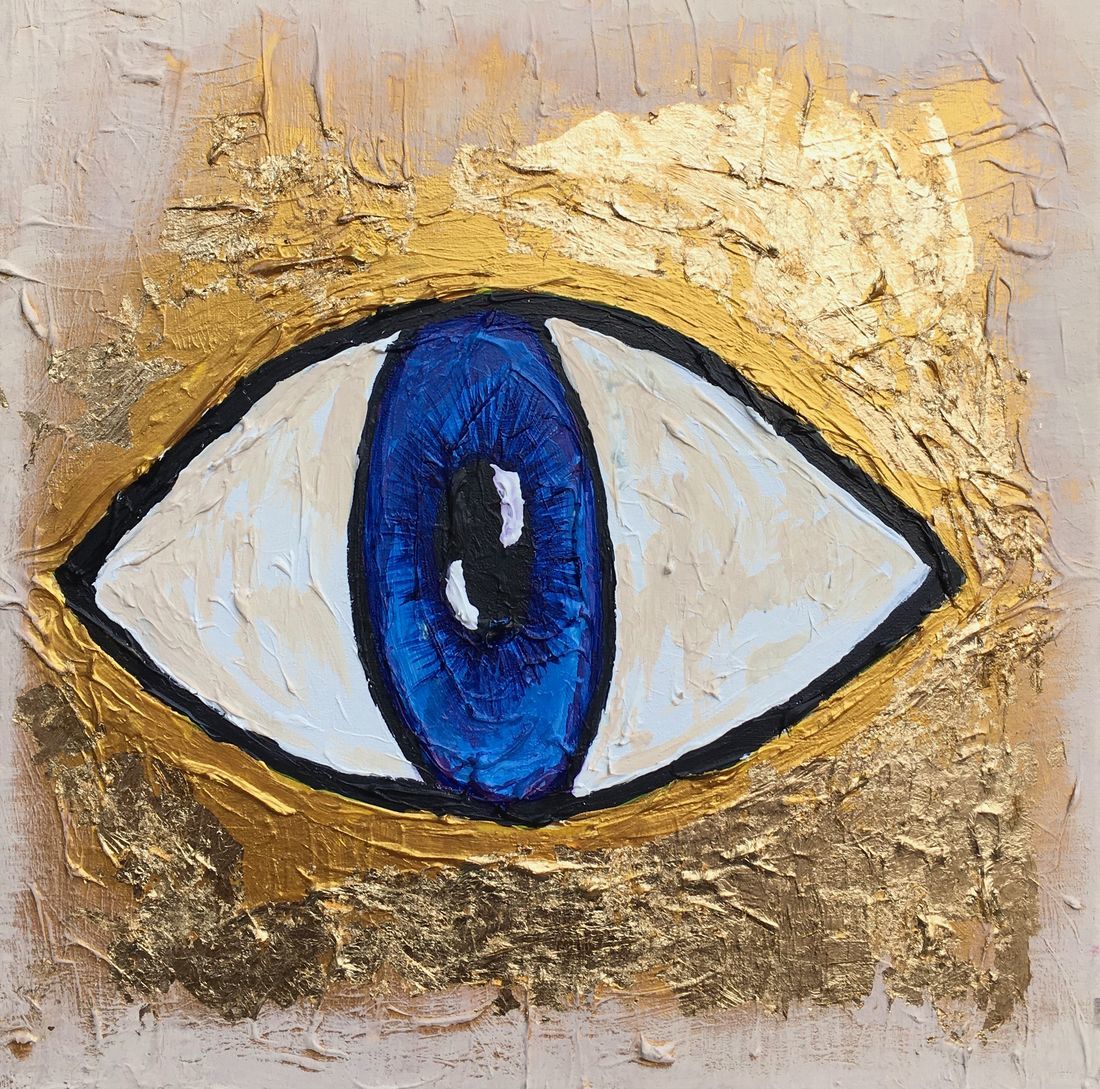 10. "Eyeball", 2018, Acrylic and Gold Leaf on Canvas, 30 cm x 30 cm.